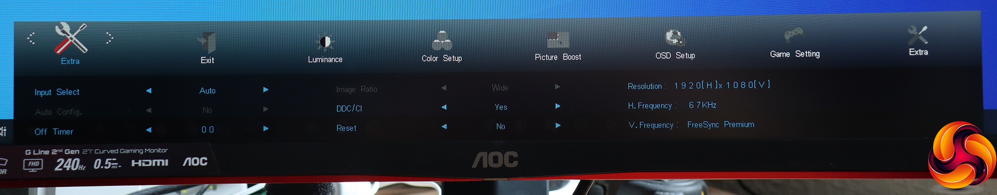 Finally, Extra is where you find all the options that don't fit elsewhere. You can manually choose a video input, set a timer to turn the screen off, disable DDC/CI control, and reset to default settings.
