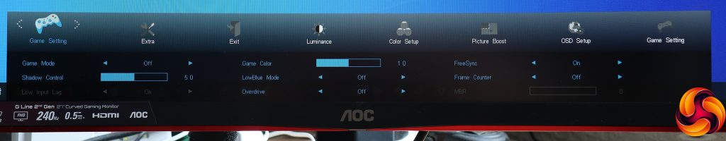 Overall, the OSD is not exactly packed with features, but it does have a reasonable amount of options for gamers. We still wish AOC didn't have what essentially amounts to three different preset systems in three different places – Game Modes, Eco Modes, and LowBlue Modes. It could also be useful to group the hardware frame counter and crosshair together into one quick menu. But at least you have these features, which some gamers will appreciate.