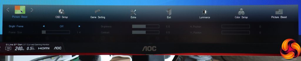 Picture Boost is the next section, which includes the Bright Frame system. This lets you define a portion of your screen and apply different brightness settings to it. We've never been quite sure what the function of this is, but you might find a use for it.