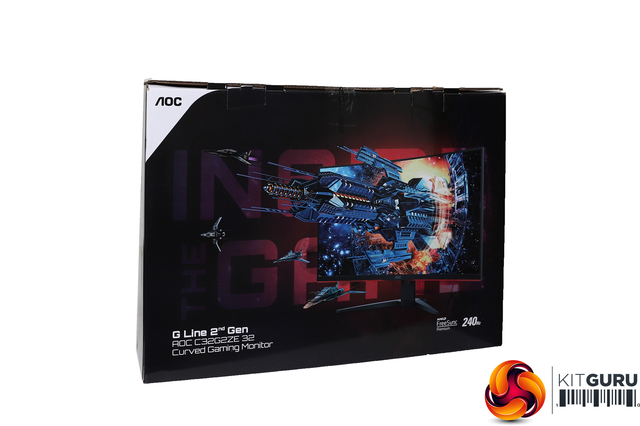 The AOC C32G2ZE‘s box has plenty of drama, if you like spaceships (which we do).