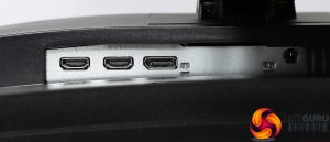 With no USB hub, the arrangement of ports underneath is fairly simple. On one side underneath are the pair of HDMI 2.0 ports plus the DisplayPort 1.2. This may seem outmoded now that 1.4 is available, but you don't need the latter to drive a screen at Full HD, even one running at 240Hz. Likewise, HDMI 2.0 can support this refresh at Full HD.