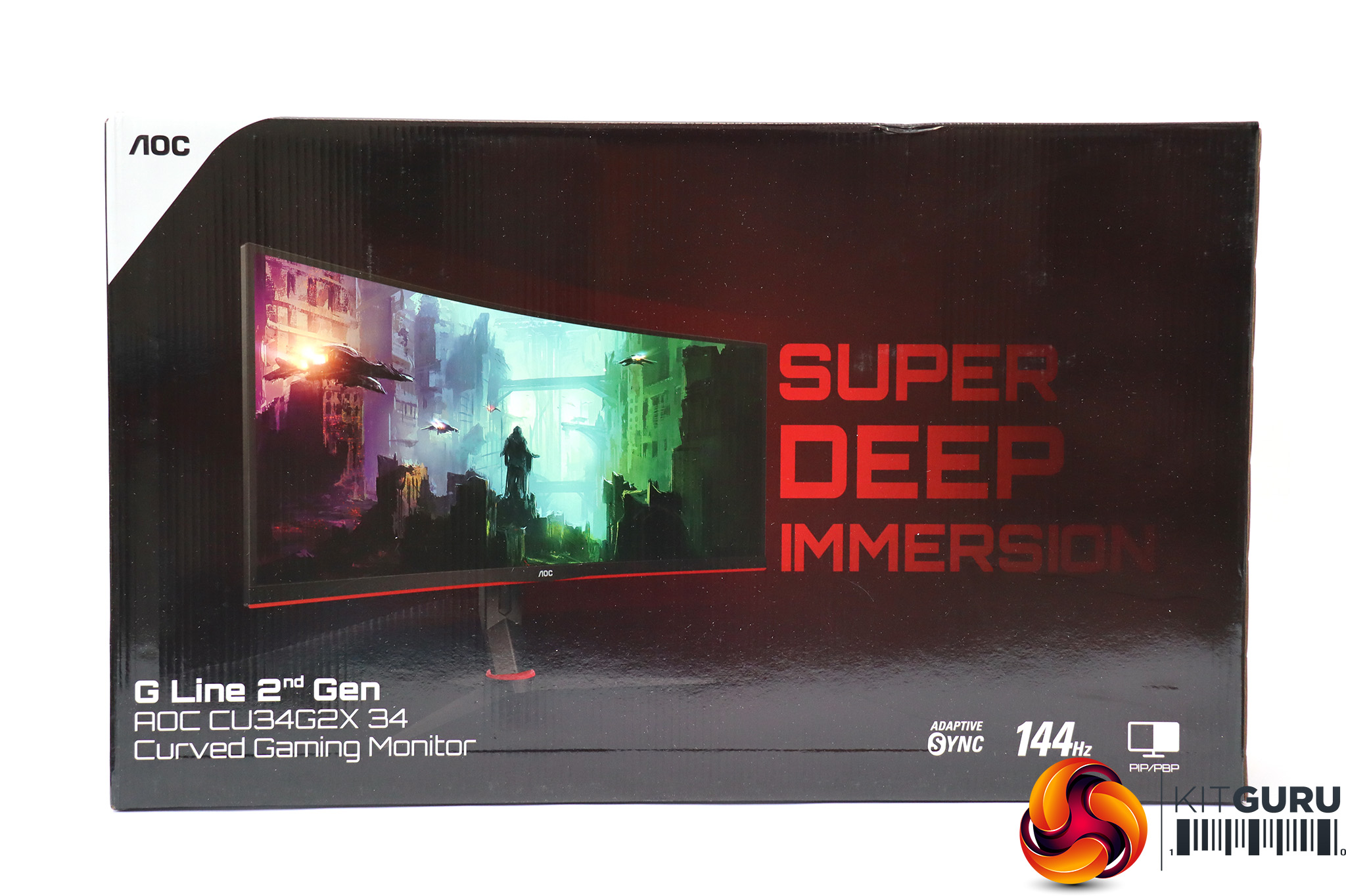 The AOC CU34G2X box looks exciting enough for a gaming monitor. Perhaps we'd have liked to have seen a giant explosion or a threatening alien creature jumping out of the screen. But in the end it's just a box.