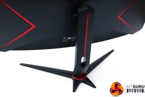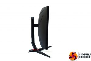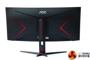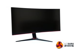 This is a good-looking screen, with mostly a dark grey plastic exterior, plus a few flashes of deep metallic red to add interest, particularly at the rear. The curvature is a relatively pronounced 1500R. Although this screen has a 34in diagonal, the 21:9 aspect means that it's not as large and heavy as that might imply. It's more thin and wide.