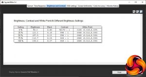 - A monitor’s contrast ratio at various brightness levels in the OSD.