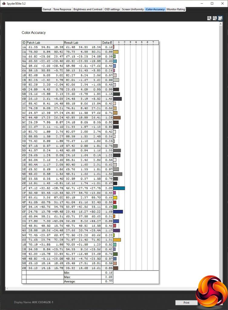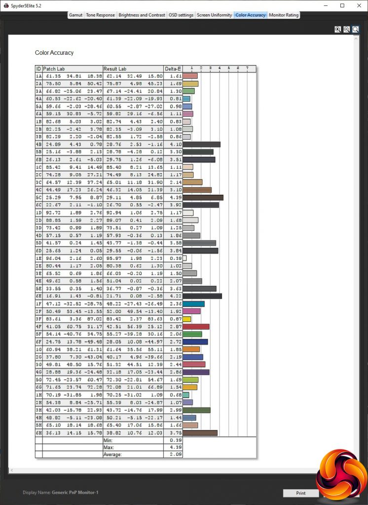 - The colour accuracy, expressed as a Delta E ratio, with a result under 3 being fine for normal use, and under 2 being great for colour-accurate design work.