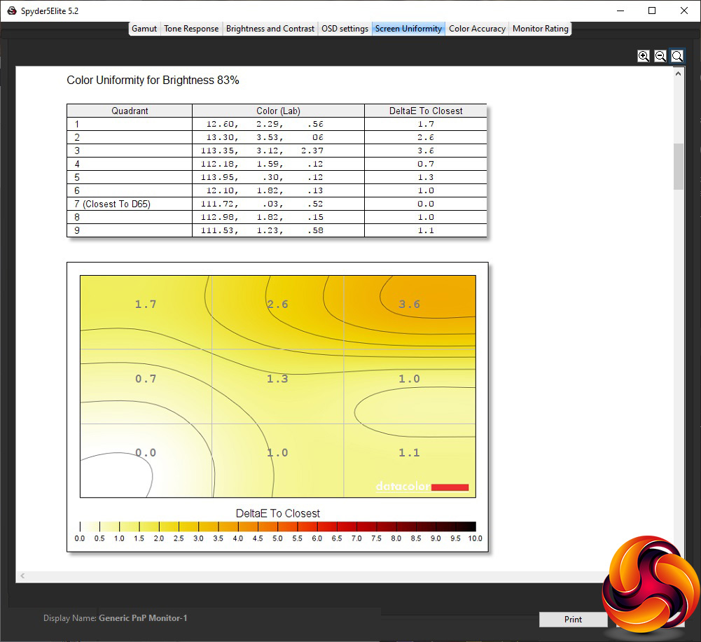 Brightness uniformity is also decent, with only the bottom right corner over 10 per cent aberration.