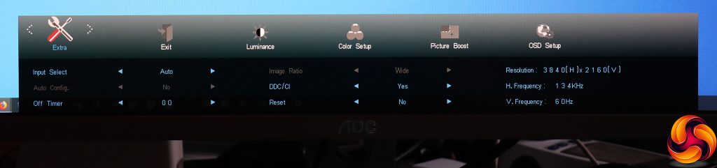 Finally, the Extra section includes sundry additional features, such as whether the input selects automatically, if DDC/CI is enabled so your graphics card can control certain features, and resetting to defaults. You also get a readout of the current input signal parameters.