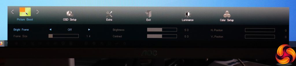 AOC's Picture Boost has always been a bit of an enigma for us. It includes a feature called Bright Frame that allows you to define a portion of the screen and apply different brightness and contrast to it compared to the rest of the screen. It feels like it could be useful, but we've never quite fathomed what that use actually is.