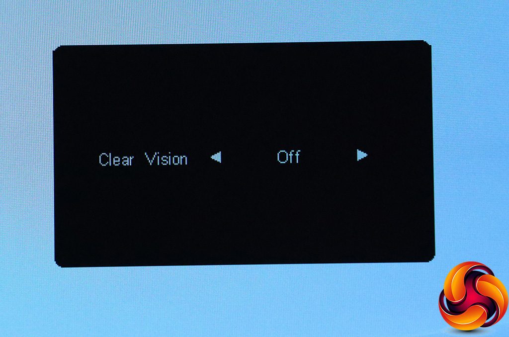 Pushing the joystick left provides access to Clear Vision, which appears to be a sharpening system with three levels, aimed at making non-4K signals look better on this 4K screen.