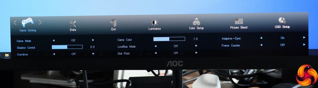 For gamers, there is even a “Dial Point” option that puts a crosshair in the centre of the screen. You can turn adaptive sync off and on, and superimpose a frame counter in one of the four corners of the screen.