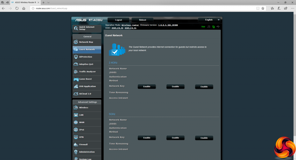 Setting up a guest WiFi network is the next option, although the interface is the same as the GT-AC5300.