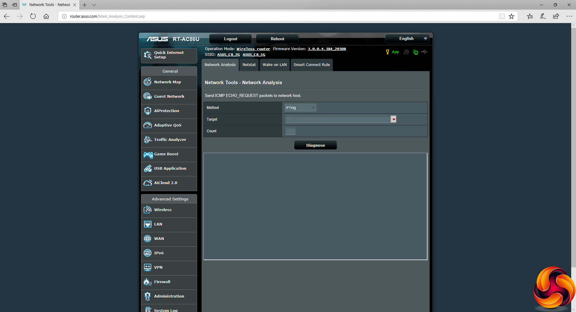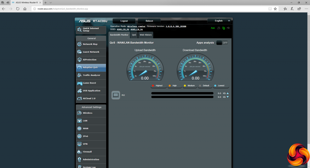 The rest of the Advanced section is identical to the GT-AC5300. You can configure IPv6, and the firewall has the same options to filter URLs, keywords and network services. There is logging available and port forwarding can be configured manually. The same network analysis tools can be called upon.