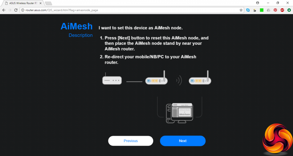 Whether you've gone via the prompt or the Operation Mode option, you will be led to this wizard which will then reset the router as an AiMesh node when you click Next.