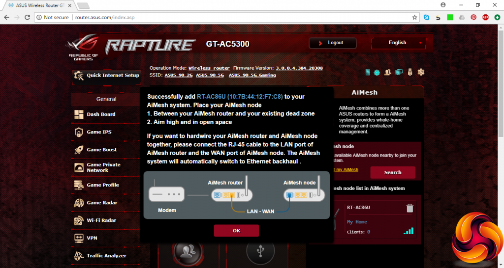 The AiMesh is ready to go! Next, we will test to see whether performance is actually an improvement over a standalone router.