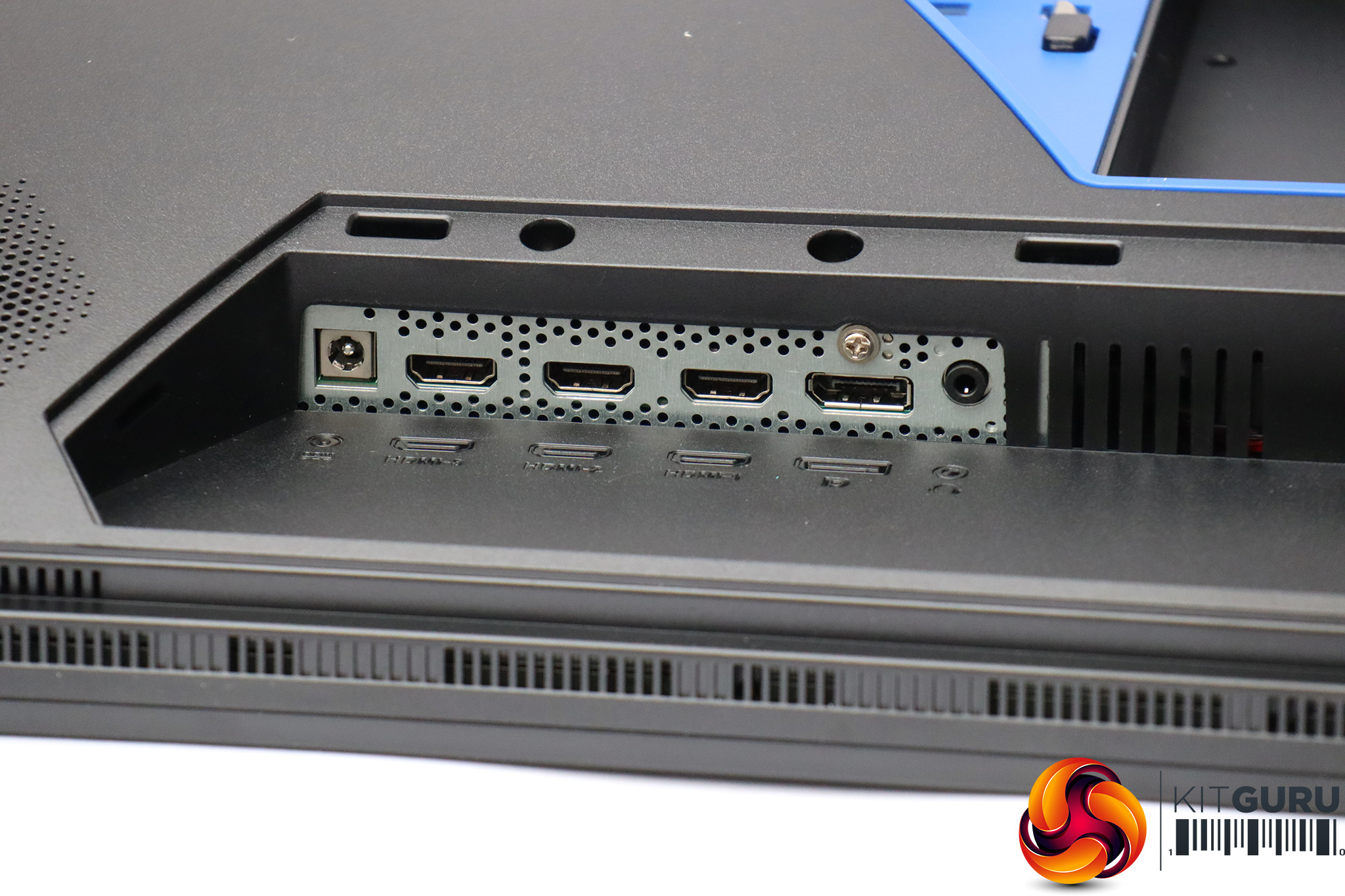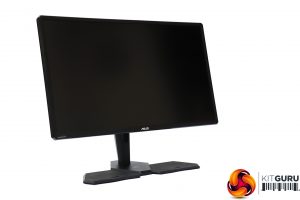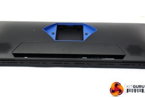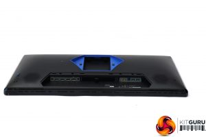 The CG32UQ is a fairly sober visual design by gaming screen standards. The blue hexagon on the rear around where the stand meets the panel is the only flash of colour. The appearance is solid but not overly exciting. However, turn this screen on and the dots you can see around edge of the rear of the bezel light up – these are ambient lighting that can be set to react to the hue of what is onscreen.