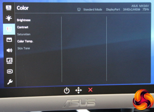 The options available in the Color menu depend on which preset you are using. In the default Standard Splendid Mode, you get Brightness and Contrast (set to 80 per cent each) and Color Temperature. This has Cool, Normal and Warm options, or you can adjust RGB values manually.