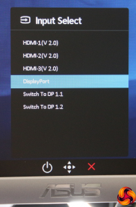 The left-hand button alongside the joystick calls up the power controls for the monitor, which you then operate with the joystick. Pressing the right-hand button twice calls up the list of inputs, with the joystick again used to navigate the options.