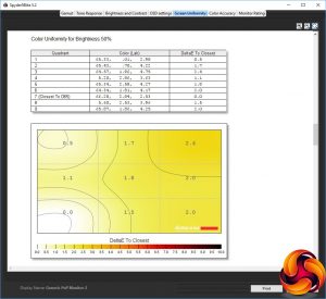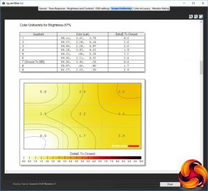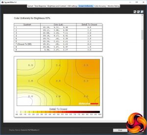 Our main test involves using a DataColor Spyder Elite 5 Colorimeter to assess a display’s image quality. The device sits on top of the screen while the software generates colour tones and patterns, which it compares against predetermined values to work out how accurate the screen is.