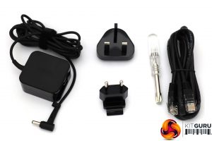 The stylish black box the ASUS ROG Rapture GT-AC2900 comes in contains the usual power supply along with UK and EU plug options. There's also a handy little Philips head screwdriver in case you don't have one to attach the base of the unit to the main body.