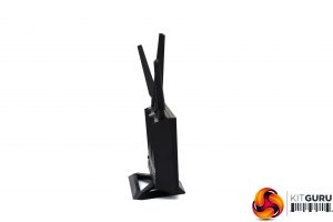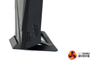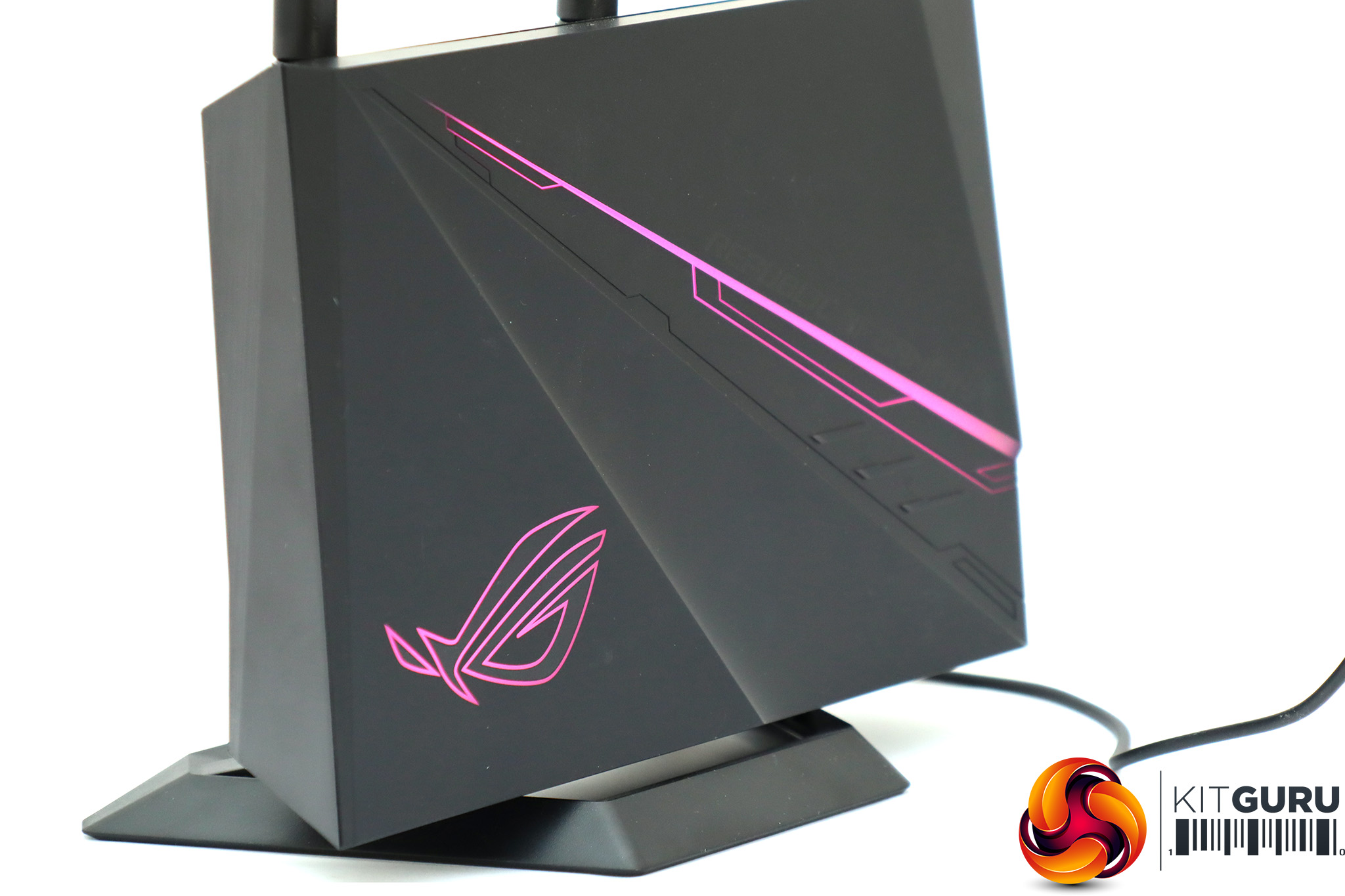 Aside from the vertical orientation, when turned off the GT-AC2900 is a fairly typical black box, with a bit of contouring and a couple of ridges to break the monochrome monotony. However, when powered up the AURA lighting adds much more colour, and (as we'll see when we turn to discussing the management interface) you can customise this to fit your tastes.