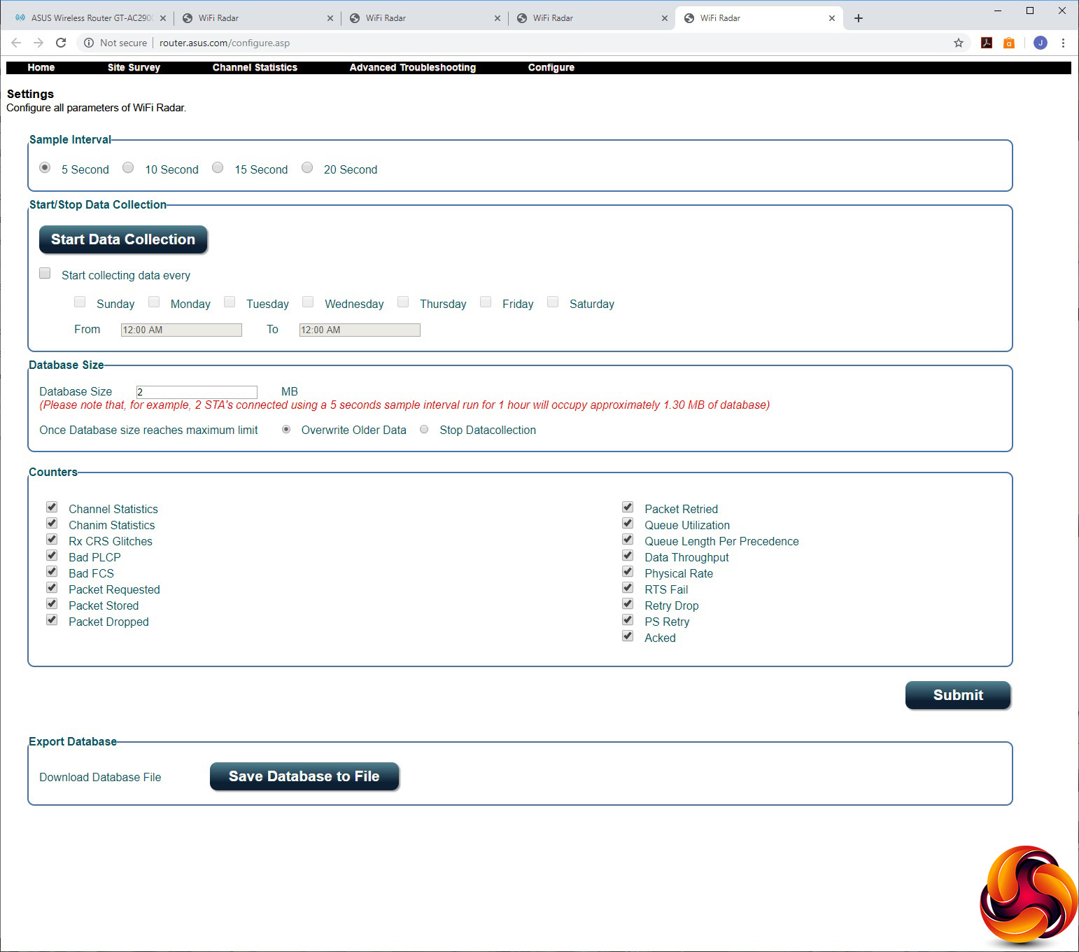 You can view the statistics of the current channels used by your router, troubleshoot issues, and configure how data is collected. It all looks very useful to optimise your WiFi, but the one thing that isn't obvious is that you need to hit “Start Data Collection” before it shows any information.