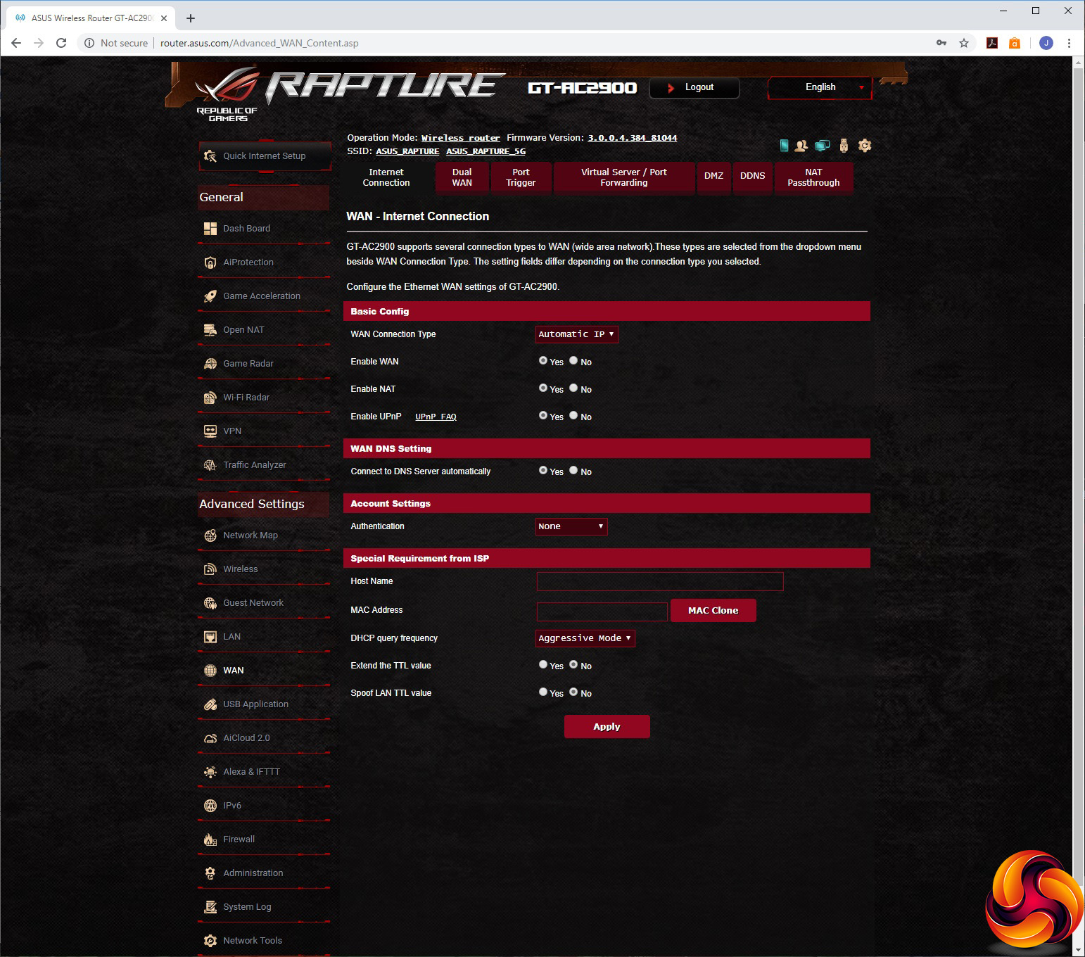 Overall, the GT-AC2900 has a huge backend packed with features. If there's anything missing let us know, because we couldn't spot anything. The core router settings are comprehensive, and the gaming options that have been added are full of abilities too.