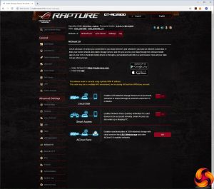 As we have come to expect from ASUS routers, the administration interface is absolutely packed with features. The overall look is a little more exciting than regular ASUS routers thanks to liberal usage of colourful imagery. But it's still a huge list of options, and the appearance is much more busy than the DumaOS used by NETGEAR's gaming routers.