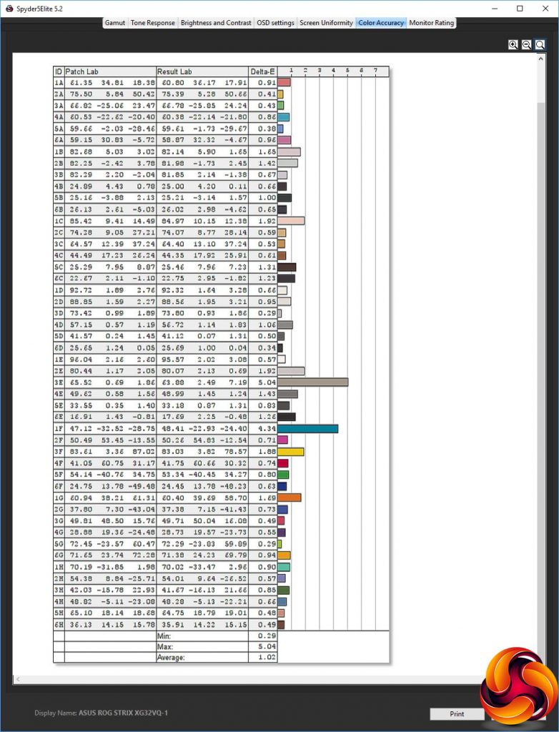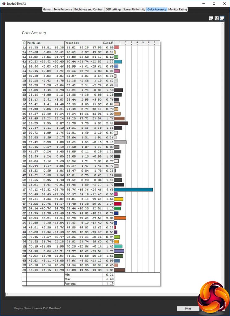 - The colour accuracy, expressed as a Delta E ratio, with a result under 3 being fine for normal use, and under 2 being great for colour-accurate design work.