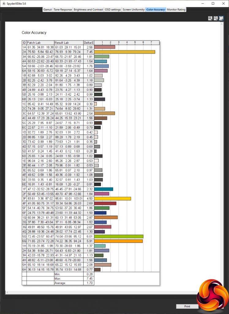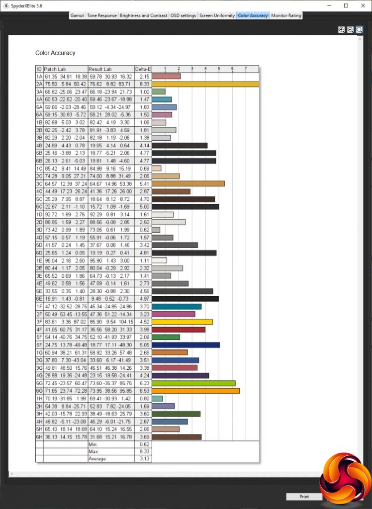 - The colour accuracy, expressed as a Delta E ratio, with a result under 3 being fine for normal use, and under 2 being great for colour-accurate design work.