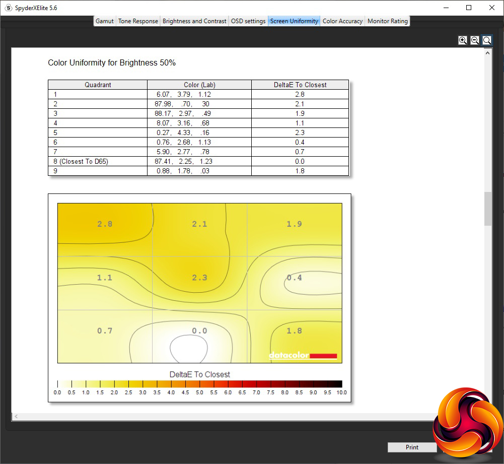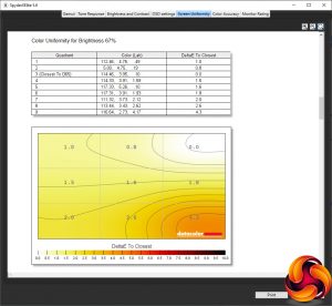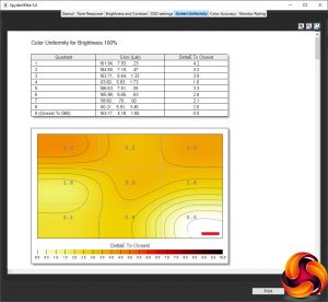 Our main test involves using a DataColor SpyderX Colorimeter to assess a display’s image quality. The device sits on top of the screen while the software generates colour tones and patterns, which it compares against predetermined values to work out how accurate the screen is.