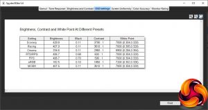 - A monitor’s contrast ratio at various brightness levels in the OSD.