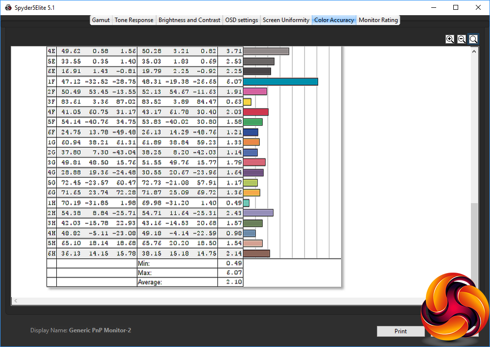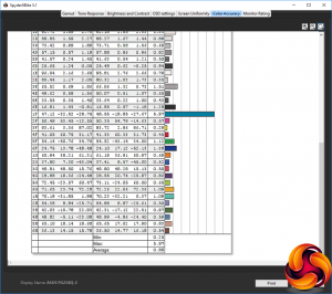 - The colour accuracy, expressed as a Delta E ratio, with a result under 3 being fine for normal use, and under 2 being great for colour-accurate design work.