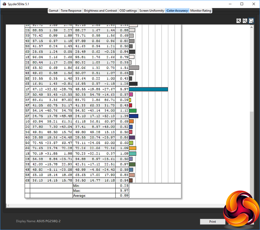 Colour accuracy was already good, and with calibration it dropped to a very impressive 0.89 – one of the best scores we have seen. Despite being a TN panel, this is clearly a high quality piece of hardware.