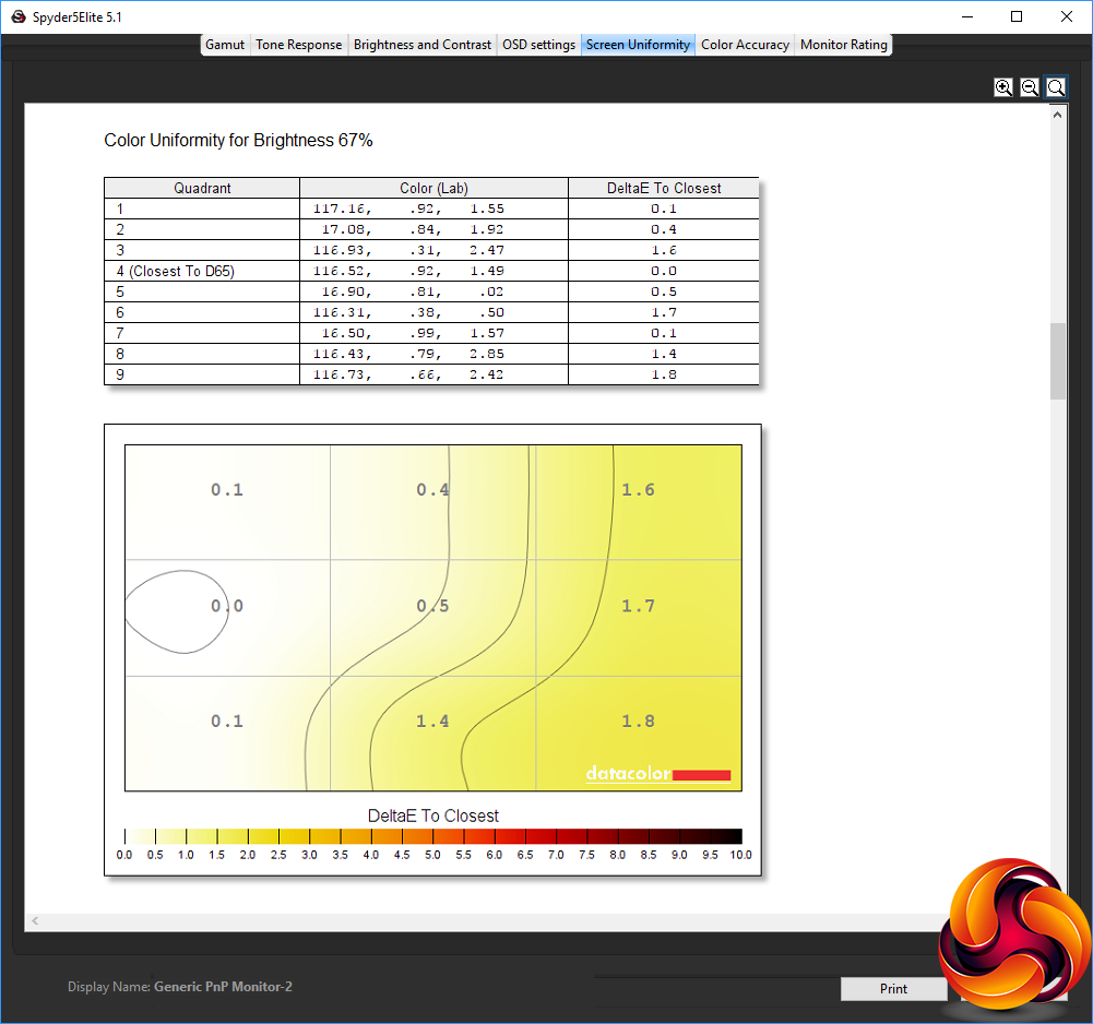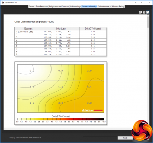 Our main test involves using a DataColor Spyder Elite 5 Colorimeter to assess a display’s image quality. The device sits on top of the screen while the software generates colour tones and patterns, which it compares against predetermined values to work out how accurate the screen is.