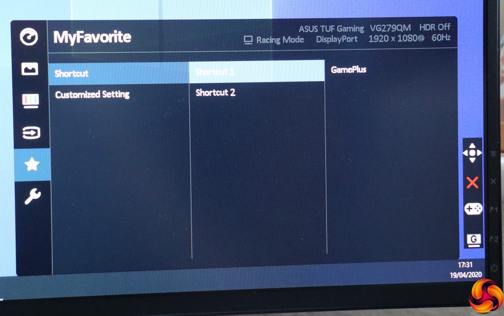 MyFavorite is where you can change the function of the two keys that by default provide immediate access to the GameVisual modes and GamePlus options. You can also save and load four different custom settings collections.