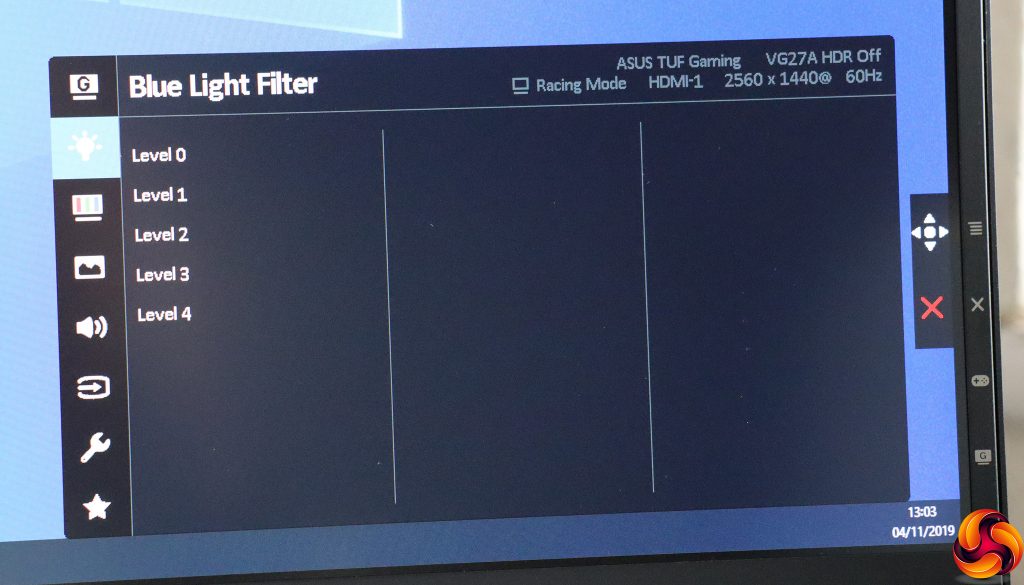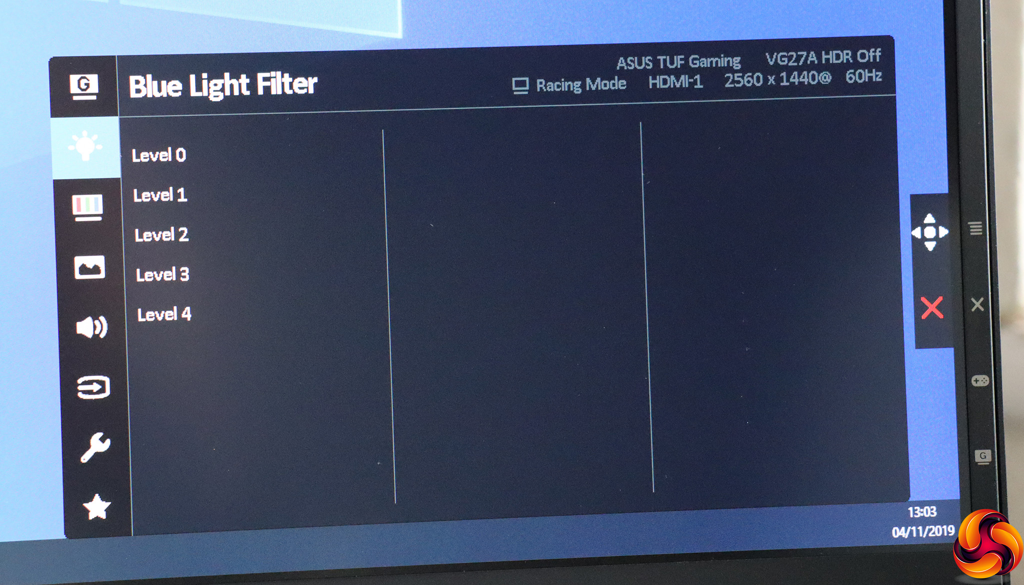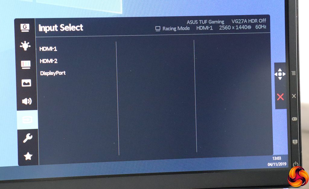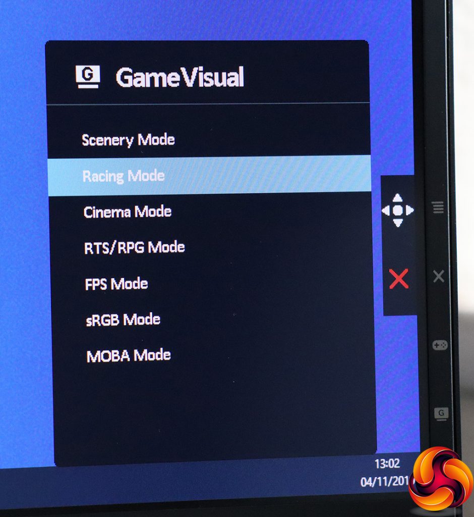 Finally, we get to the joystick. Pushing this inwards calls up the main OSD menu, with the initial submenu being the GameVisual modes that you can also access directly via their own button.