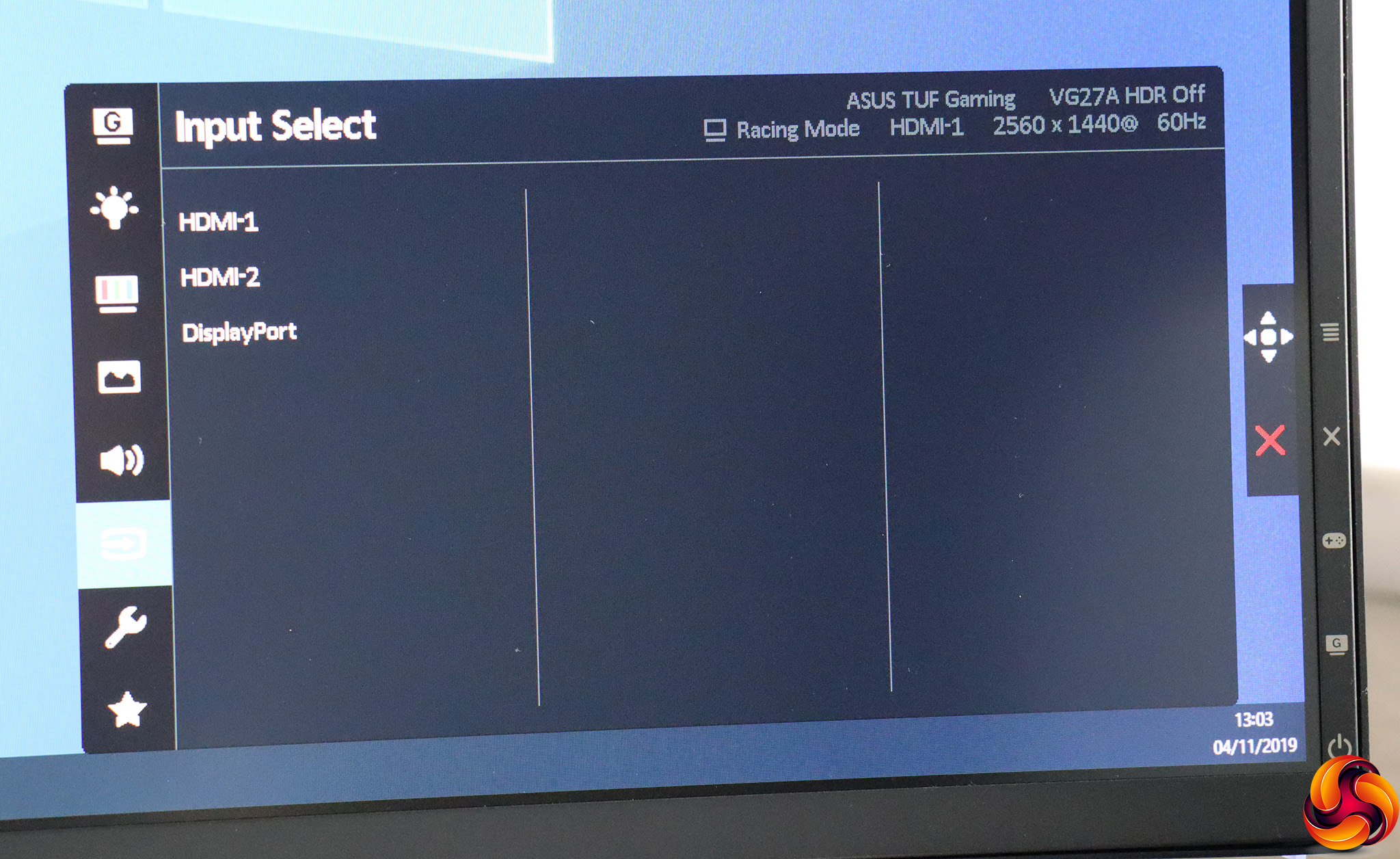 Strangely, there is no quick menu option by default to switch between inputs manually. You have to hunt through the main menu to find this function.