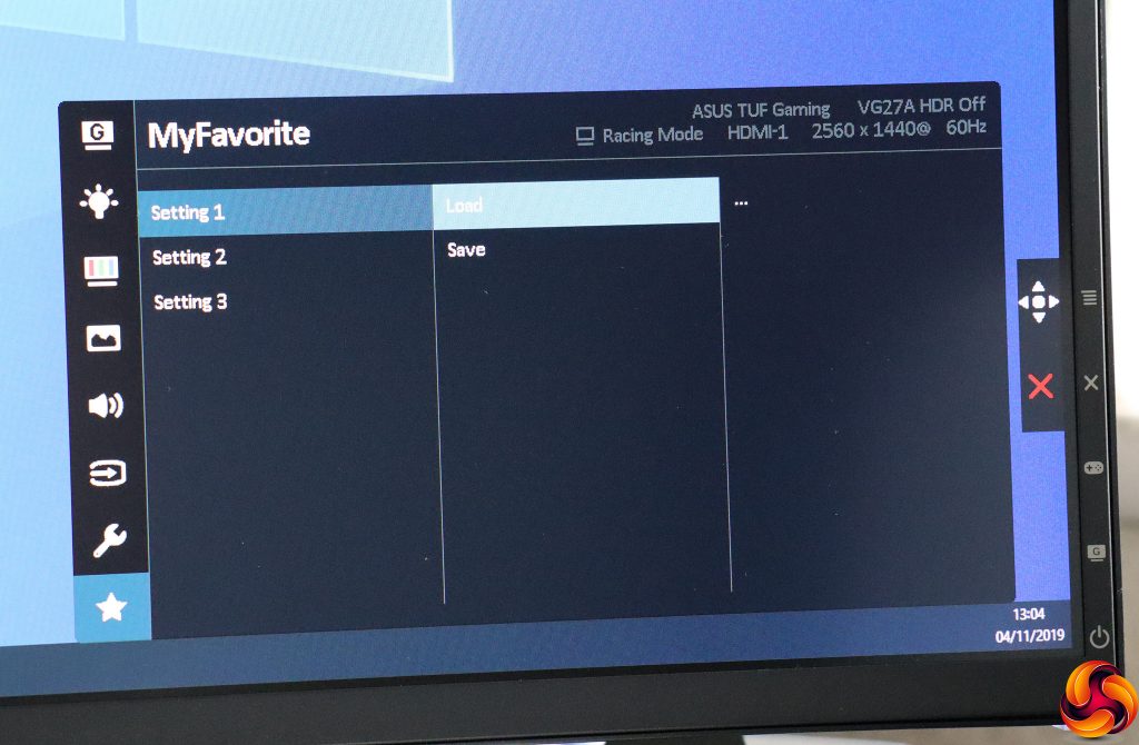 The next button up from the bottom reveals the GameVisual modes, which encompass the main gaming genres plus a couple of more general options. These include Scenery, Racing, Cinema, RTS/RPG, FPS, sRGB and MOBA, with Racing set as the default for some reason. Many manufacturers separate the gaming and general presets, so we appreciate that they're all available here in one place.