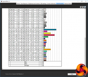 - The colour accuracy, expressed as a Delta E ratio, with a result under 3 being fine for normal use, and under 2 being great for colour-accurate design work.