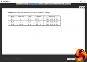 The brightness is only 87.1cd/m2, but contrast is a huge 5,120:1. It's reassuring to see white point around 7200K all the way up to 75 per cent brightness, just increasing a little to 7300K at 100 per cent brightness.