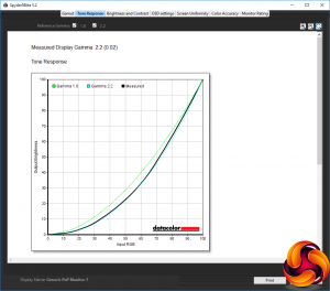 There are no gamma settings, and the standard curve is pretty spot on 2.2, which is reassuringly mid-range.