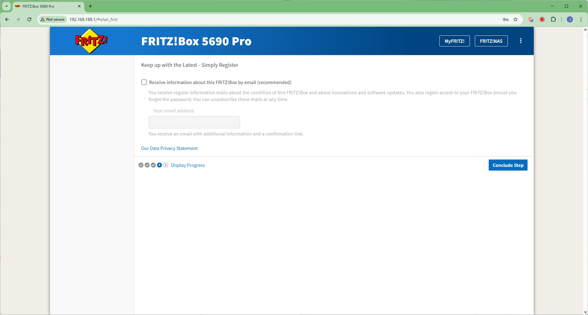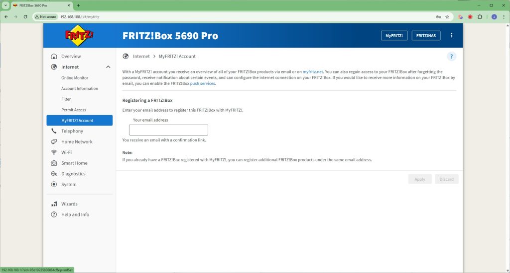 Finally, you can configure your MyFRITZ! account details, which enables you to recover access to the device if you forget the admin password, among other things.