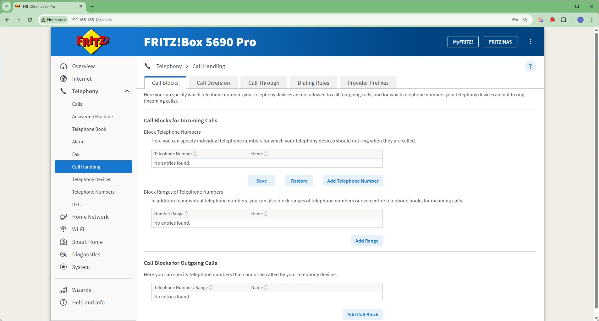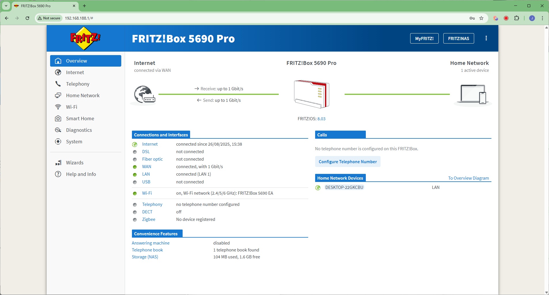 The Telephony section provides an absolutely huge range of options for IP-based home landline calling. You can pair up to six DECT handsets with the system, and add two analog handsets (one RJ-11, one TAE). There's a built-in answering machine, you can create a phone book, and even set up three alarms to ring specific handsets. The FRITZ!Box can receive faxes and email them automatically, as well as divert calls. You can use this router for all your home phone needs or, with DECT, as a small office switchboard.