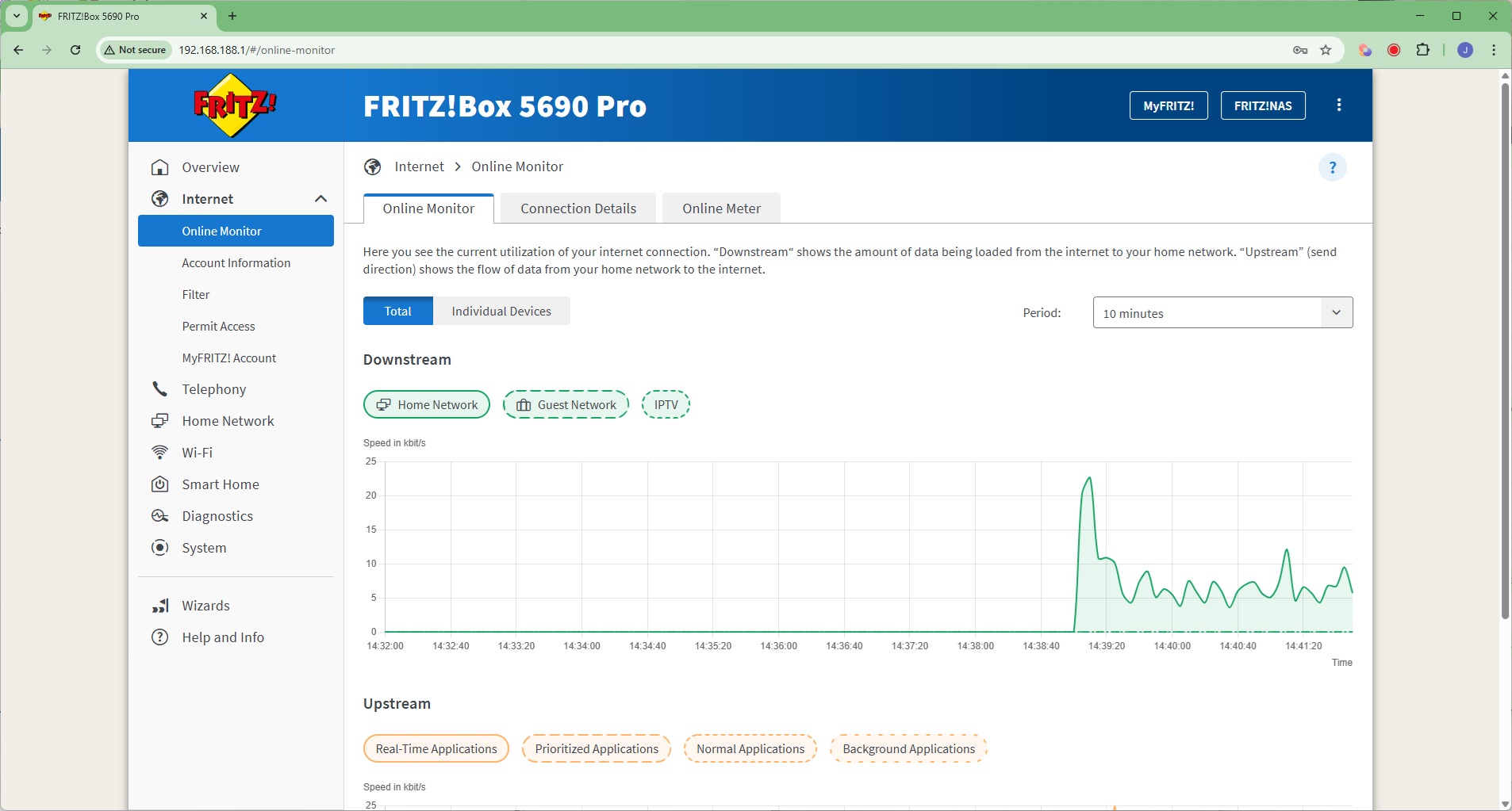 Starting with the Internet section, here you can monitor your broadband connection, check connection details, and see how much data you've used across different time slices.