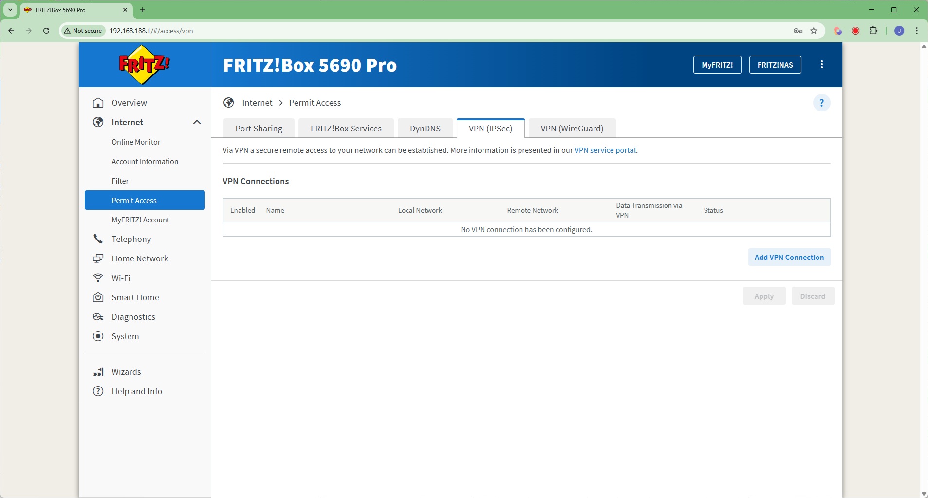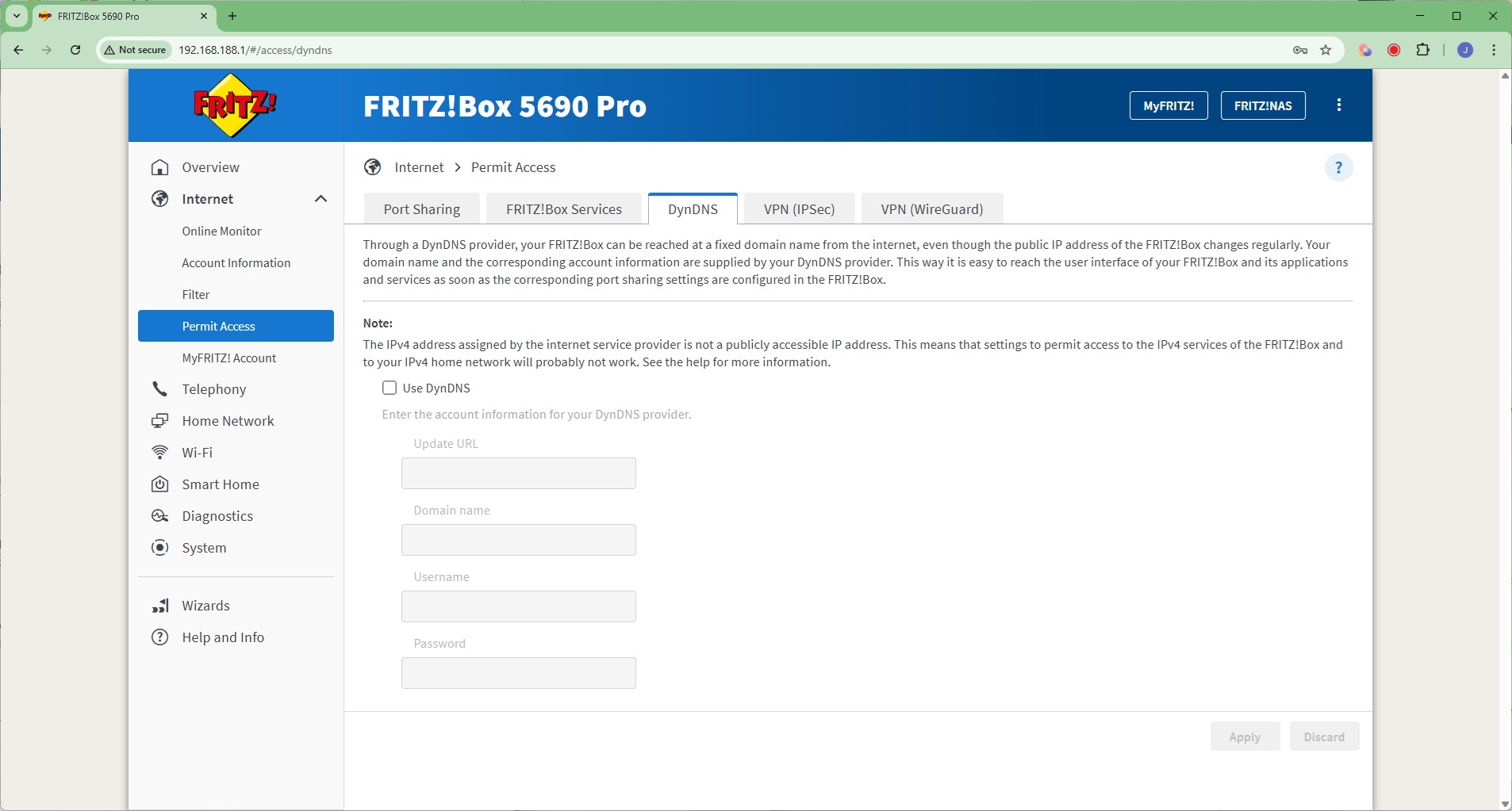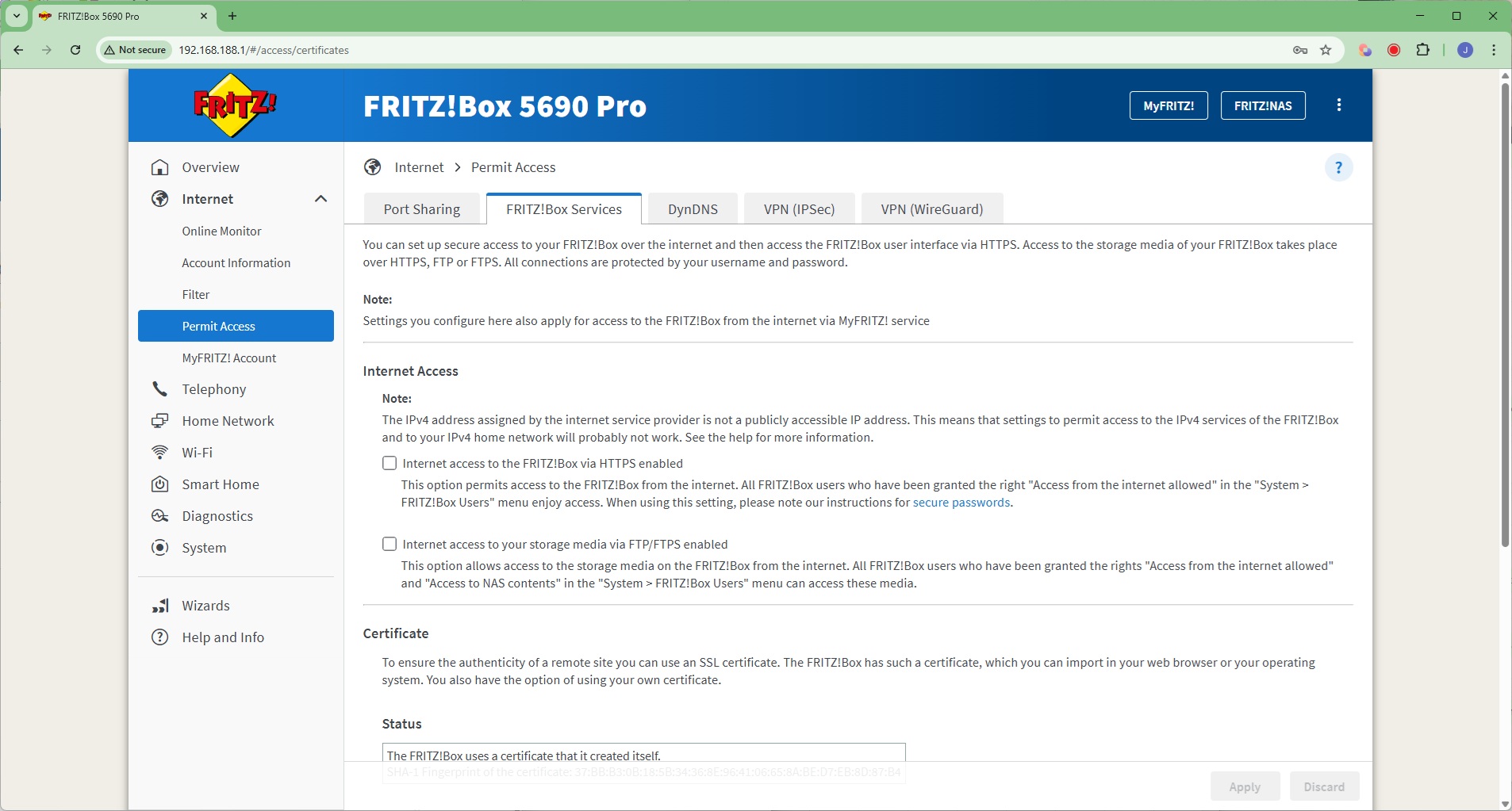 Under Permit Access, you can port share to the Internet, and enable the ability to access the router or its storage remotely. This uses a certificate which is generated automatically and can be downloaded and installed to certify your browser or operating system. Dynamic DNS naming is available, but only via the DynDNS service. There is also support for VPN connections via IPSec or the WireGuard service (which also requires DynDNS to be set up).