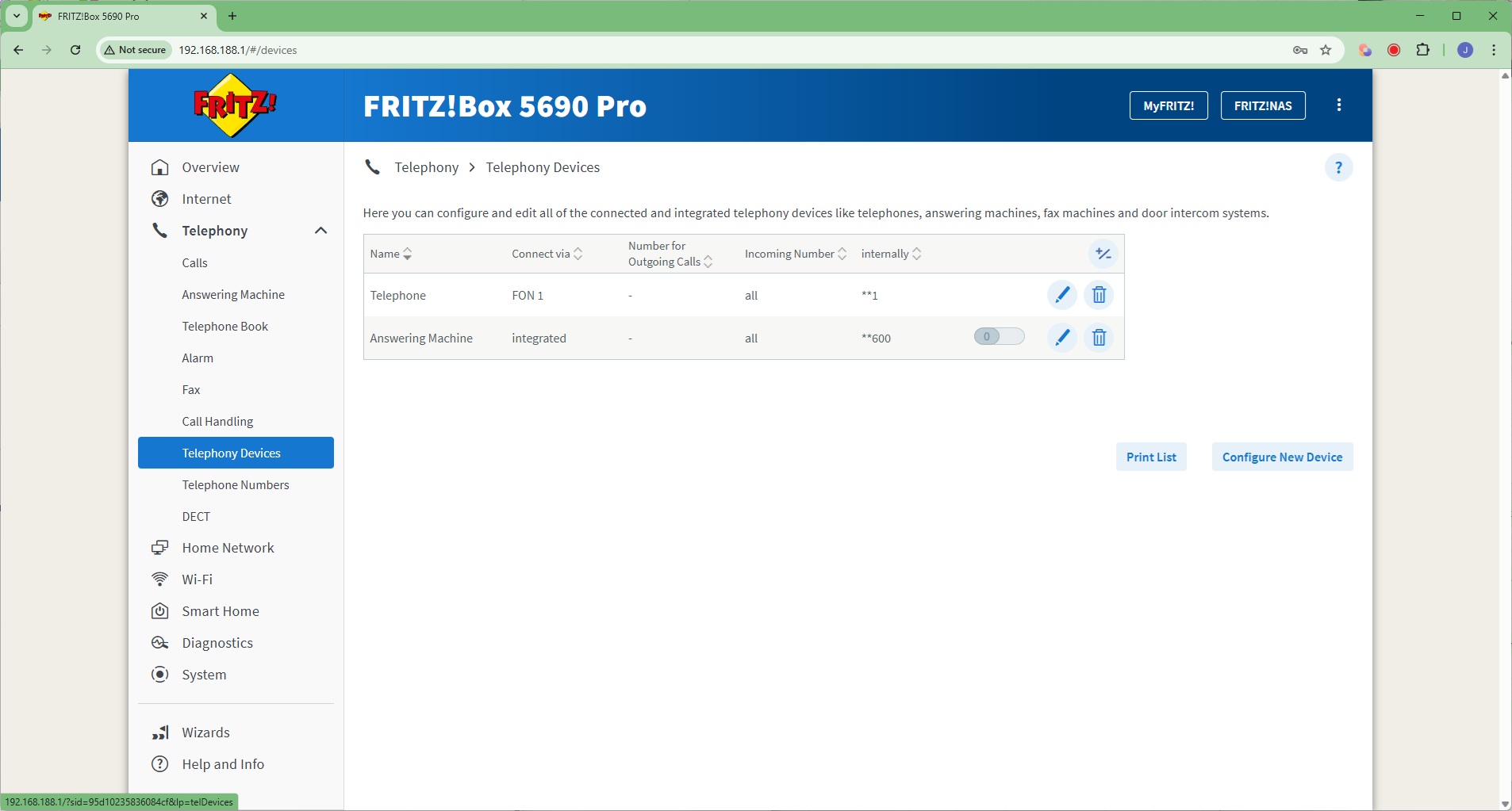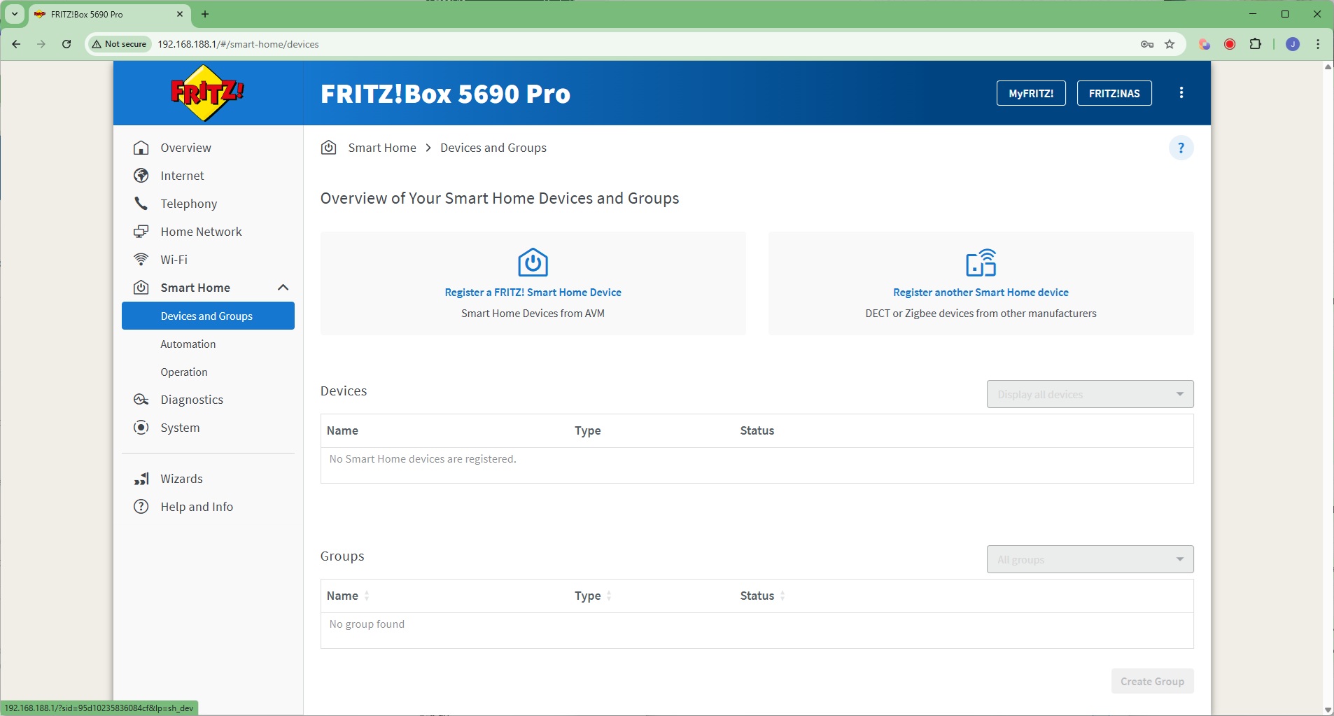 Like the AVM FRITZ!Box 7690, the 5690 Pro supports smart home devices. You can register devices, and once they are registered, create scenes, templates and routines to automate their behaviour, such as turning a set of lights off and on at coordinated times. With a very large range of Zigbee compatible devices, there's a host of possibilities here.