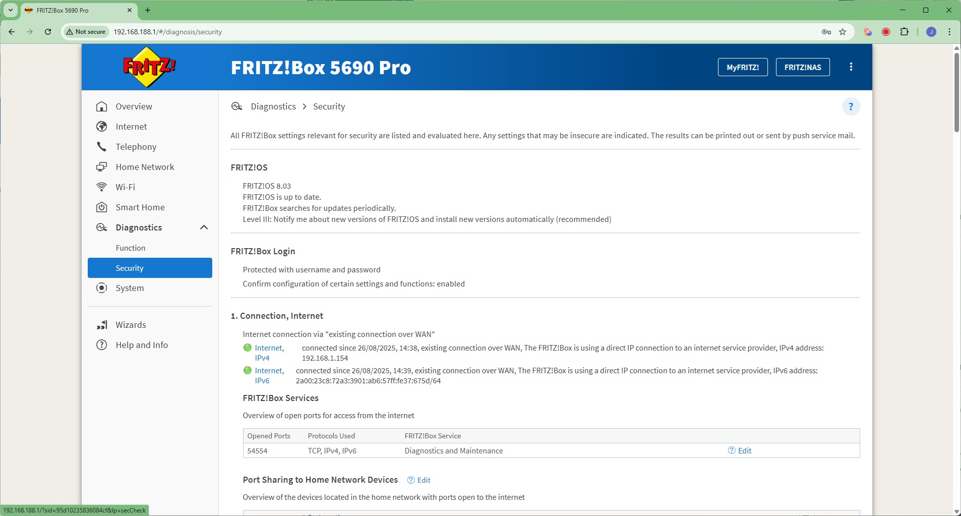 An array of diagnostic functions can be performed and security alerts perused in the Diagnostics section.