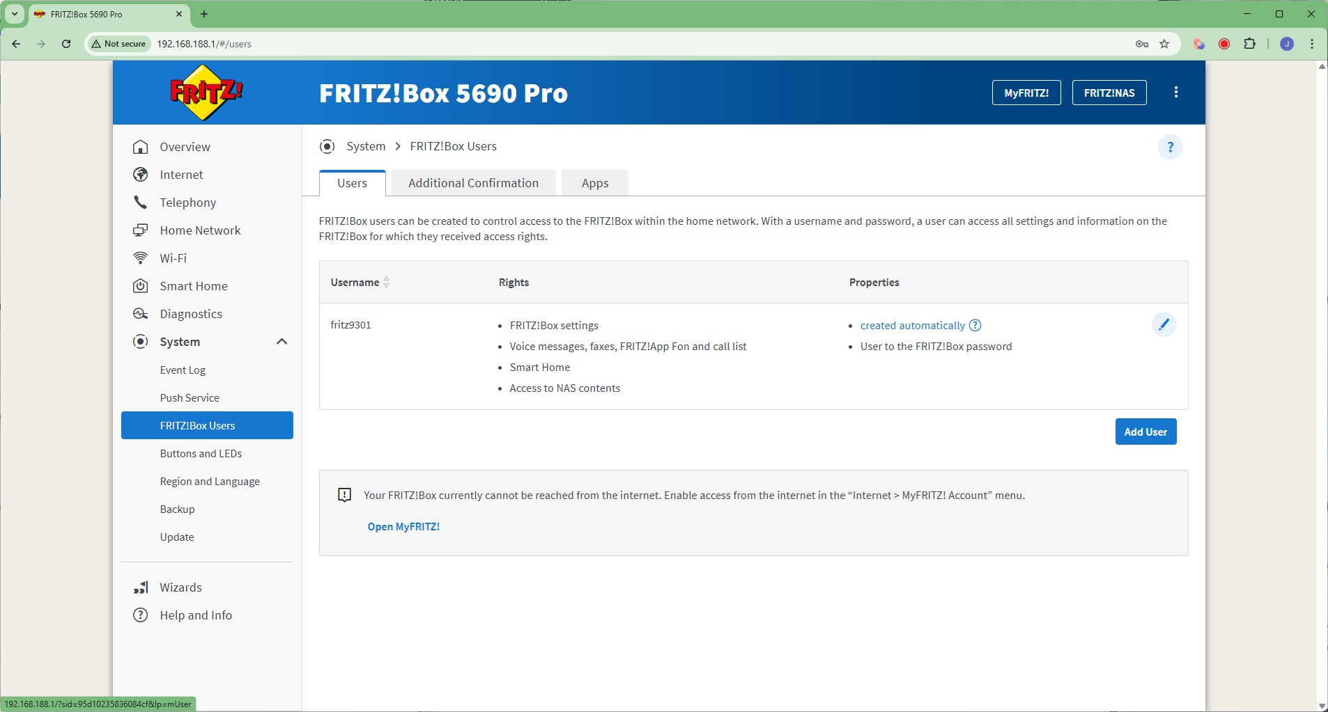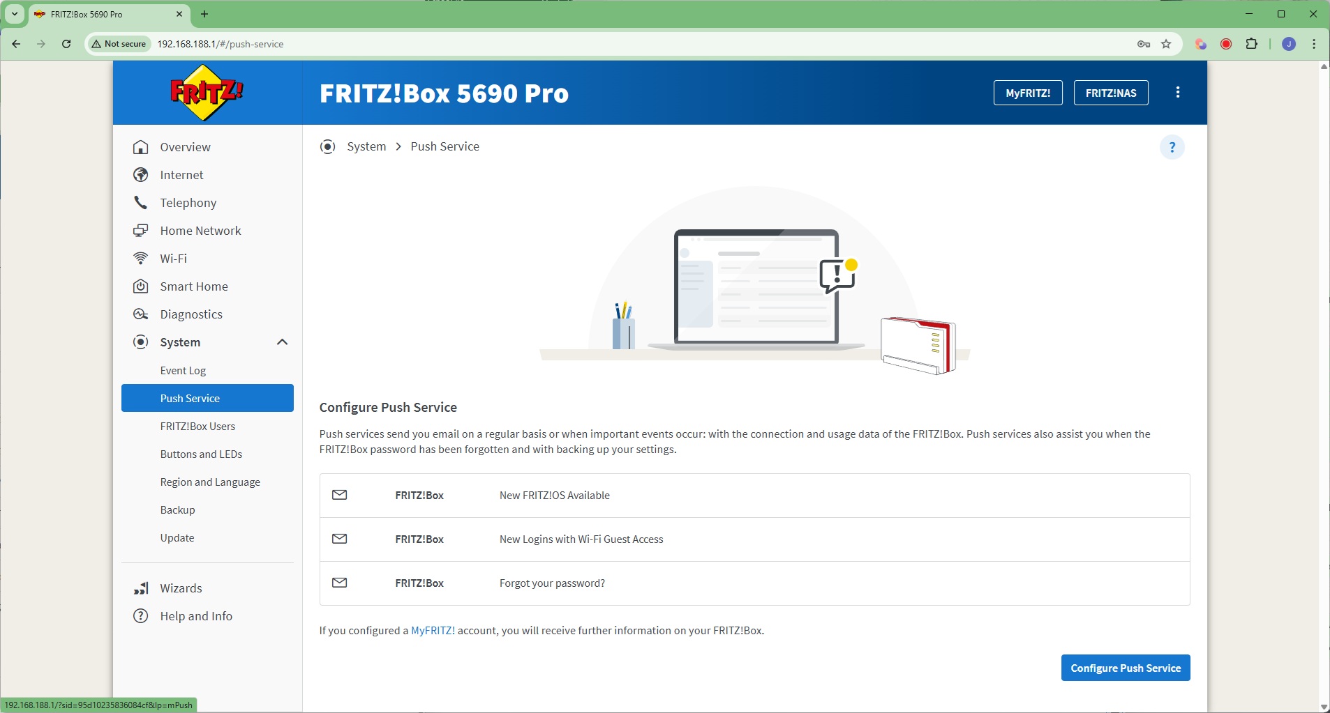 The System section is packed with sundry capabilities, including an Event Log, plus a Push Service to send email notifications about specific events. You can create multiple users, and the associated apps they use to access the FRITZ!Box. You can configure how the buttons and LEDs work, change the region and language, backup or restore settings, and return the router to default configuration. Finally, this is the area where you can automatically update the router's operating system.