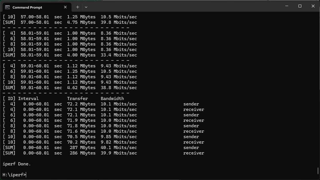 It does manage to maintain 40.1Mbits/sec at 5m and then a more competitive 34.4Mbits/sec at 10m.