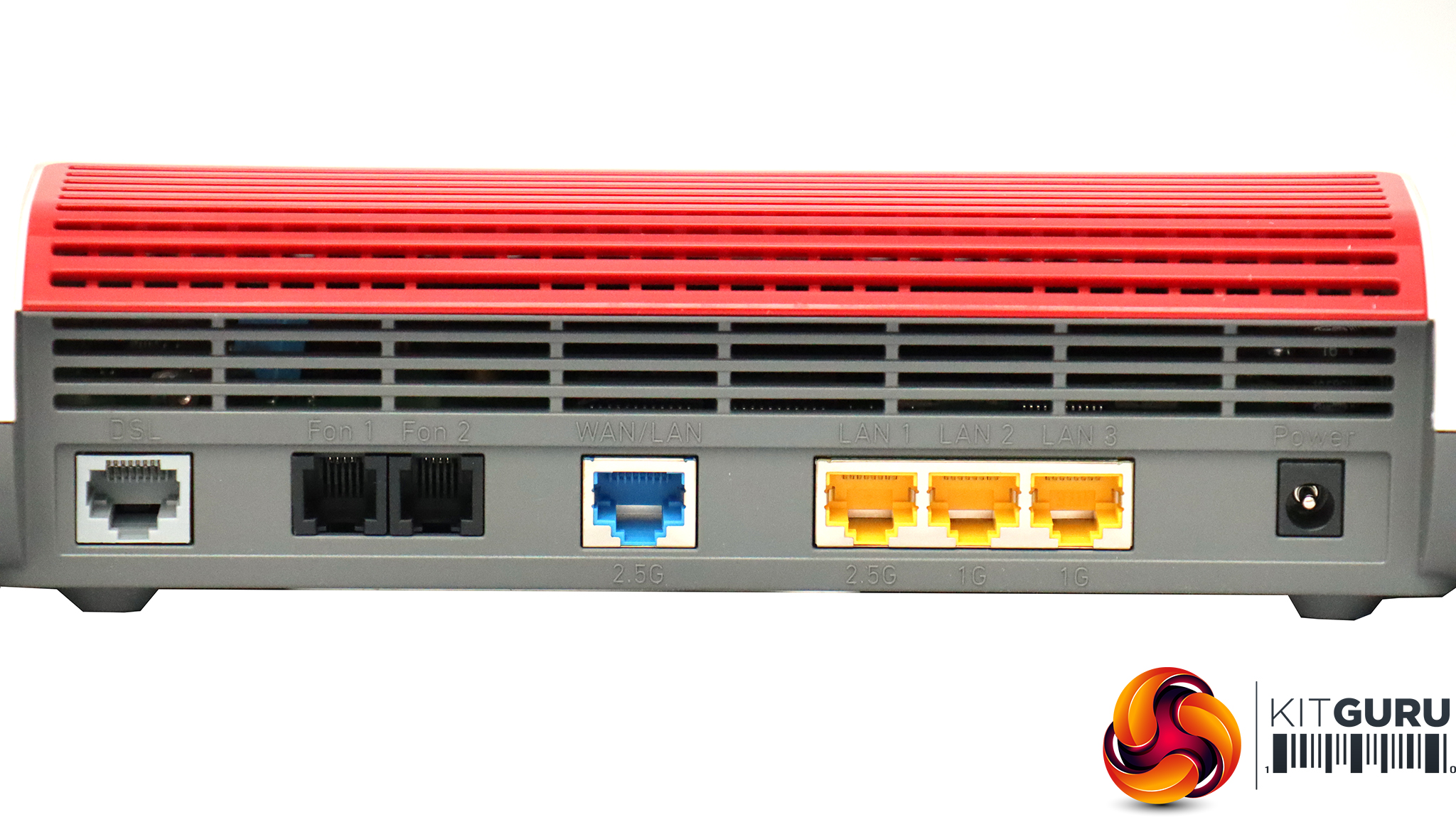 Most of the ports are on the rear, starting with the connection for ADSL (modem built in) on the left. Next along are the two RJ11 ports for analog landline phones, then the 2.5Gbit Ethernet WAN port. The LAN hub has three ports – one operates at 2.5Gbit, while the other two only 1Gbit.